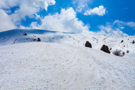 Ski slope at the Beldersay Mountain in Chimgan region of the Tian Shan mountain range near Taskent city in Uzbekistan