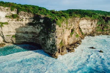 Ocean Waves on Tembeling Coastline at Nusa Penida island, Bali Indonesia