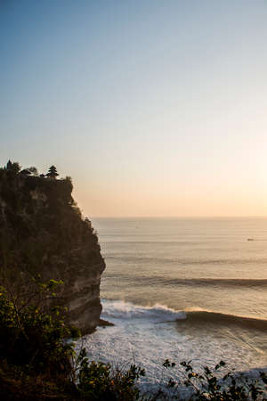 Ocean and cliff in Uluwatu with sunshine light. Bali, Indonesia