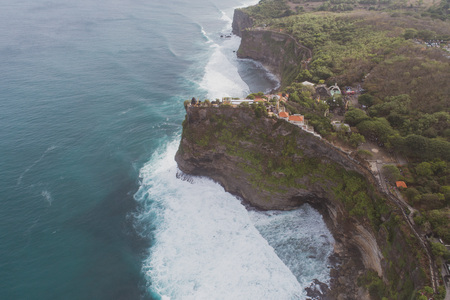 Aerial drone view of temple and beautiful Uluwatu clffs in Bali, Indonesia