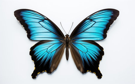Beautiful Blue Shiny Blue Swallowtai Isolated on White Background