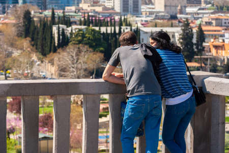 Georgia, Tbilisi - April 15, 2021: Tourists enjoying city view on a beautiful day.