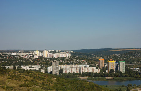 View of the town Rybnitsa, Moldova. Small town by the Dniester River. Townscape