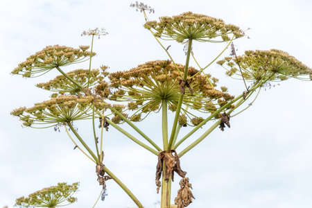 Dry stems and umbrellas with seeds of a poisonous plant Sosnowsky's hogweed (Heracleum sosnowskyi)