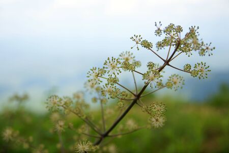 Angelica archangelica growing in a wild meadow. Folk medicinal and spice plant