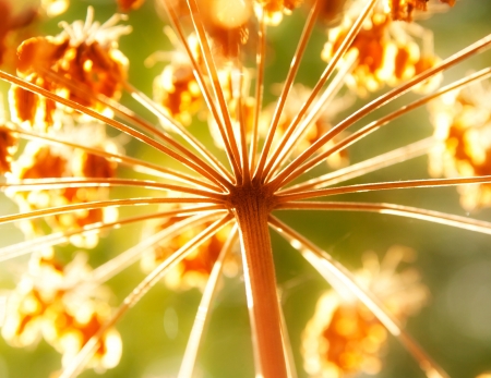 Dreamy, artistic closeup of dill flower from below. Shallow depth of focus.