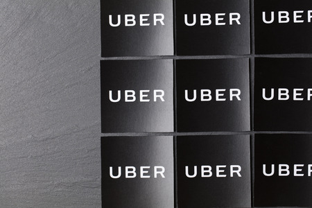 A photograph of the Uber logo. Uber is a popular taxi style transport service application, founded in 2009