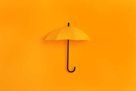 folded umbrella on the yellow background with copy space