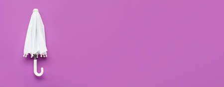 White umbrella on violet background with space for text