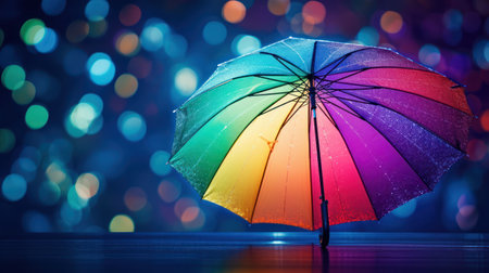 Colorful umbrella on bokeh background, rain protection concept.