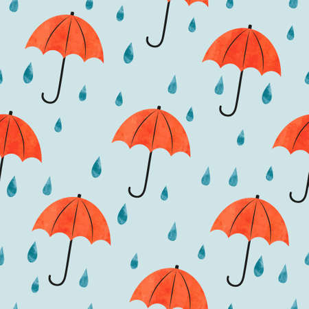 Seamless umbrellas and rain drops pattern. Watercolor Autumn background
