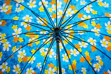 Opened colorful umbrella inside. Abstract background