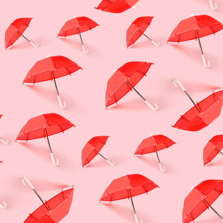 Many red umbrellas on pink background. pattern for design