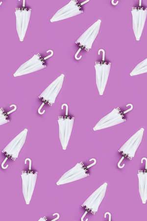 Many white umbrellas on lilac background. pattern for design