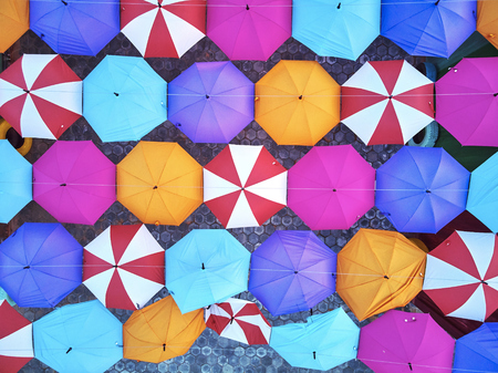 The colorful of umbrellas in the skies with sunny day