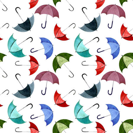 Seamless pattern with umbellas on white background. Watercolor illustration