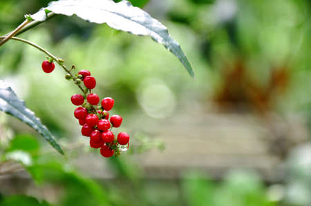 A close up of a bunch of red berries with raindrops on them. Concept of freshness and natural beauty