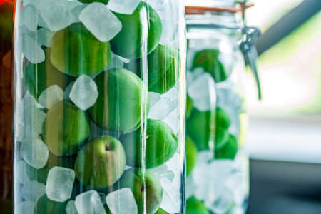 Making Japanese apricot syrup and liqueur.Ume Shigoto,Japanese plum preparation.