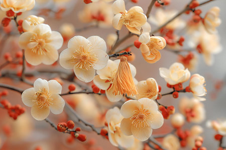 Plum blossom in spring, closeup of beautiful flowers.