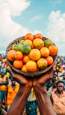 African Hands Holding Holding a Bowl of Fresh Fruits. Nutritious Food, Fresh and Juicy, Cultural Representation.
