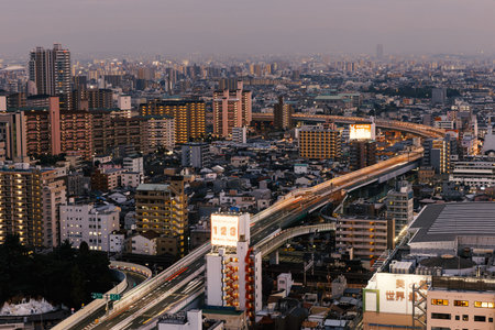 OSAKA, Japan - October, 26, 2024: Highway through the city. Urban lights and lively traffic in a bustling metropolis