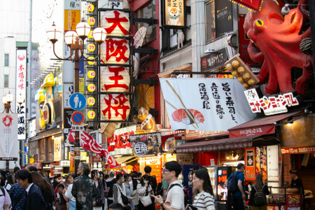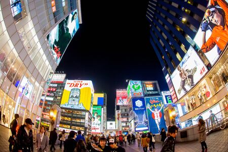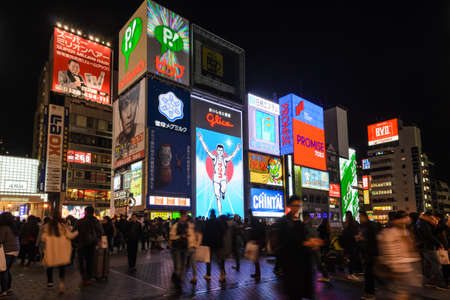 OSAKA, JAPAN - APRIL, 25 2019: Night streets of Dotonbori street in Osaka, Japan