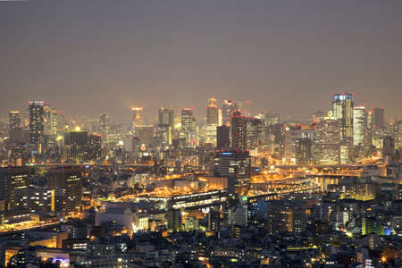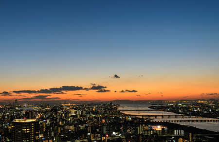 OSAKA, JAPAN - NOVEMBER 25, 2016 : Stunning twilight view of Osaka commercial and business cityscape from Umeda Sky Building in Osaka, Japan. Osaka is the second largest metropolitan area in Japan.
