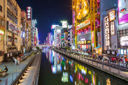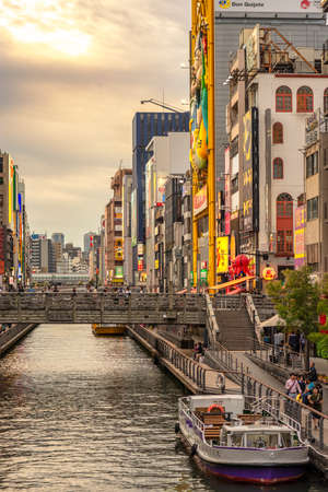 Osaka / Japan - October 1, 2017: Dotonbori Canal in central Osaka, entertainment area and one of the main tourist destinations in Osaka, Japan