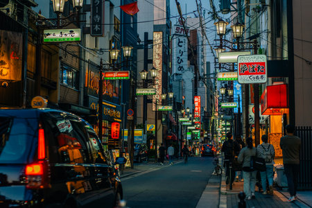 Osaka, Japan - may 2 2025 Dotonbori side streets at night with bars, restaurants. High quality photo