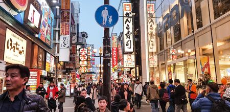 OSAKA, JAPAN - DECEMBER 1, 2019: Visitors walking at Dotonbori street in the Namba District. This area is one of the most popular destination for tourist in Osaka city.