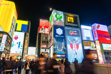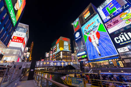 Osaka,Japan -December,17:Dotonbori is the most famous nightlife and food area for tourist, The famed advertisements of Dotonbori in Osaka City, Japan.