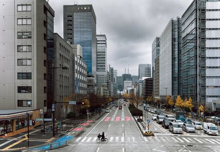 Top of modern buildings in Tokyo, Japan. Tokyo is the seat of the Emperor of Japan and the Japanese government.