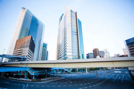 Modern buildings and overpass road at autumn in Osaka, Japan