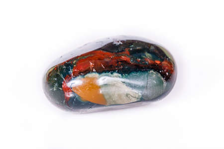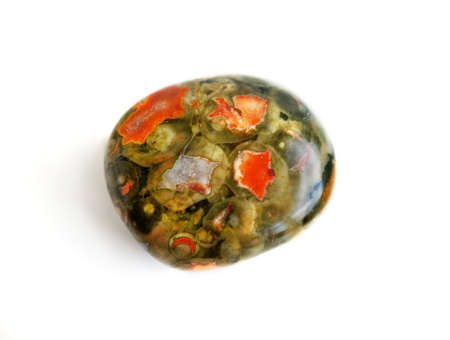 Combined moss and brick red, natural drawing on tumbled jasper. Set two nice mineral stones, objects white isolated.