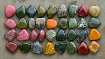 A visually captivating arrangement of polished gemstones in various colors and shapes, ideal for art projects, home decor, or positive energy displays.