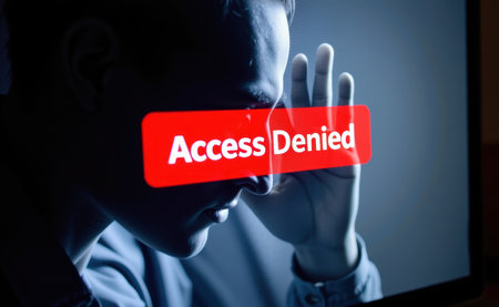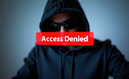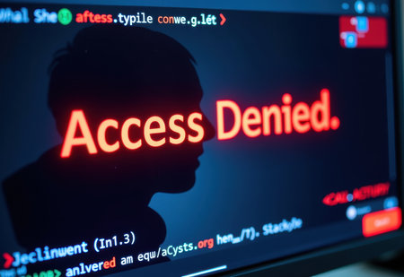 A shadow hacker in front of a computer screen displaying Access Denied in red text, representing cybersecurity threats and hacking.