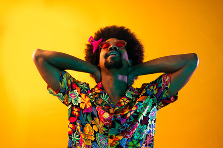 Portrait of a young african american man with afro hairstyle on a colored background.