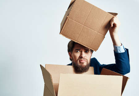 man with boxes in groups moving new place of work lifestyle official