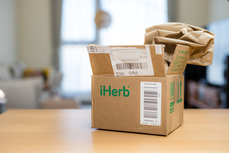 Taiwan 22 September 2023: box of iherb parcel at home