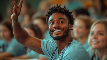 Student nurses are fully engaged in their learning activities A group of student nurses photographed during a practical lesson Engaged in the learning process, focused and attentive