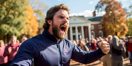 A young man in a yellow shirt stands out in a sea of eager faces at a vibrant outdoor festival, showcasing the energy and excitement of the event.