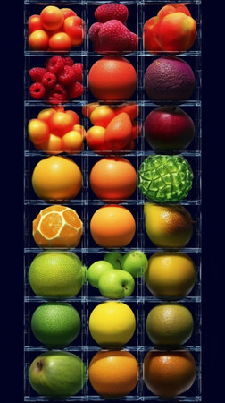 A collection of fruits in different colors, in the style of grid, Generative AI