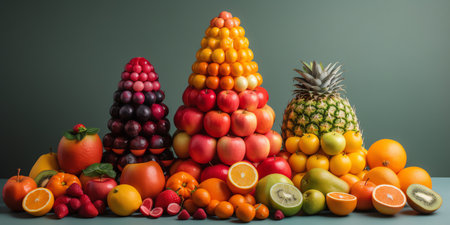 Big pyramid of different fresh juicy tasty fruits, AI Generated illustration