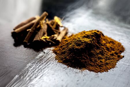 Cinnamon sticks and powder also known as Dalchini dust, Important ingradient from Indian spices