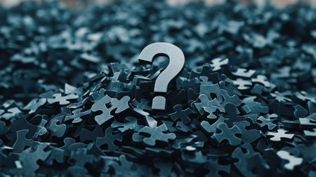 A puzzle piece stack with a question mark symbolizing curiosity and problem-solving.