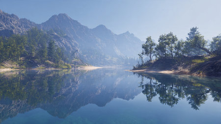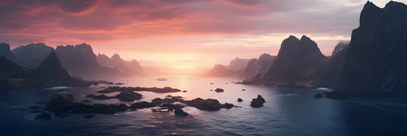 Mountain landscape at sunset. 3d render. Computer digital image.