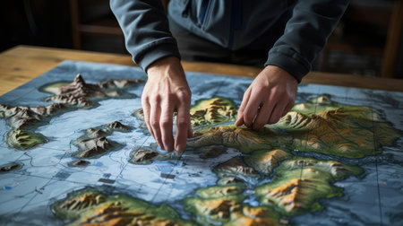 Geographer exploring the terrain on the model
