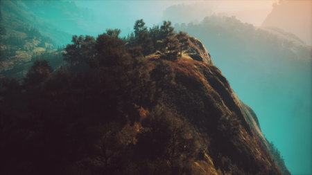 A foggy mountain view with beautiful greenery