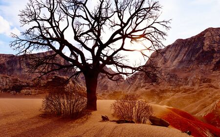 Solitary dead tree in desert 3d illustration