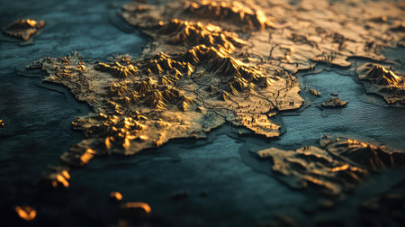 Dynamic image of a traveler exploring a world map filled with different objects, awakening wanderlust. Generative AI